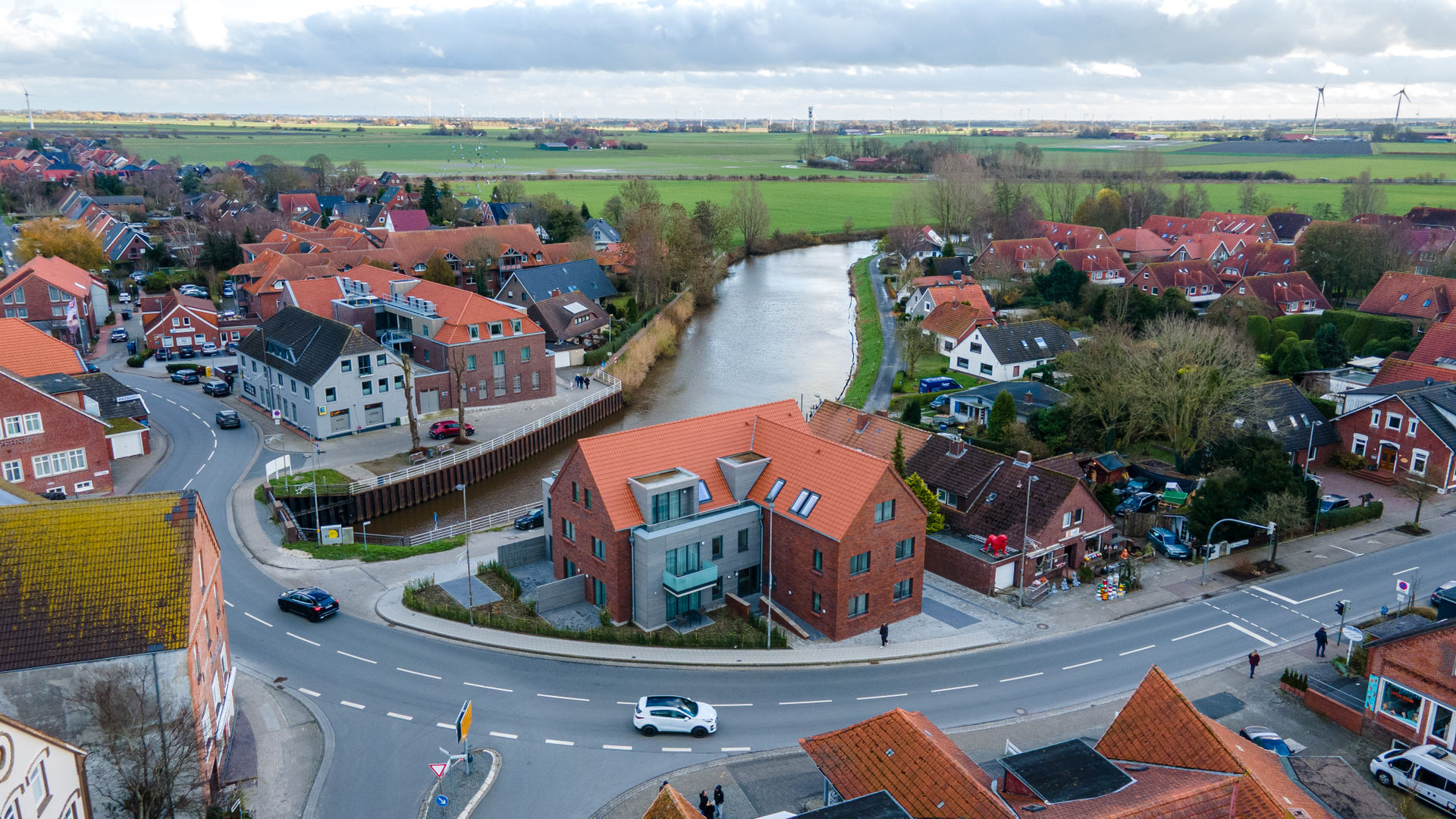 Letzte Neubauten im Nordseeheilbad mit Blick auf die Harle und den Museumshafen.